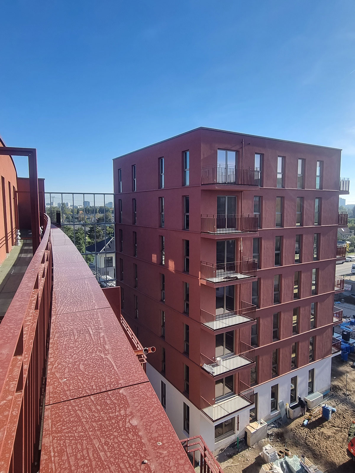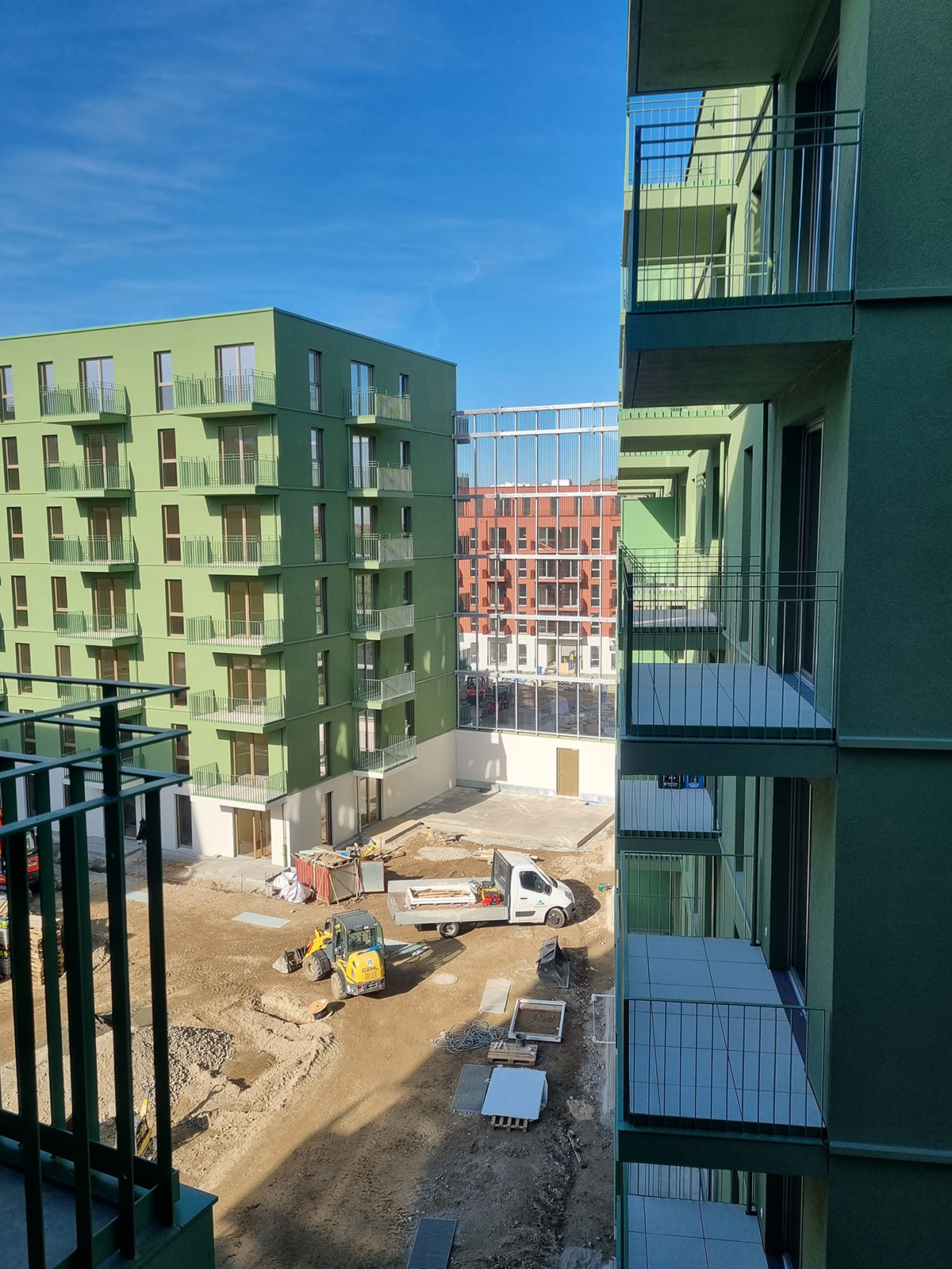 Neubau einer Wohnanlage mit Gewerbeeinheiten und Kindertagesstätte nach Plänen von Meding Plan + Projekt Architekten Hamburg, bestehend aus sieben Gebäuden auf zwei Baufeldern (ca. 380 Wohnungen) mit einer oberirdischen Bruttogeschossfläche von ca. 30.000 m²
