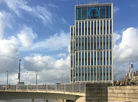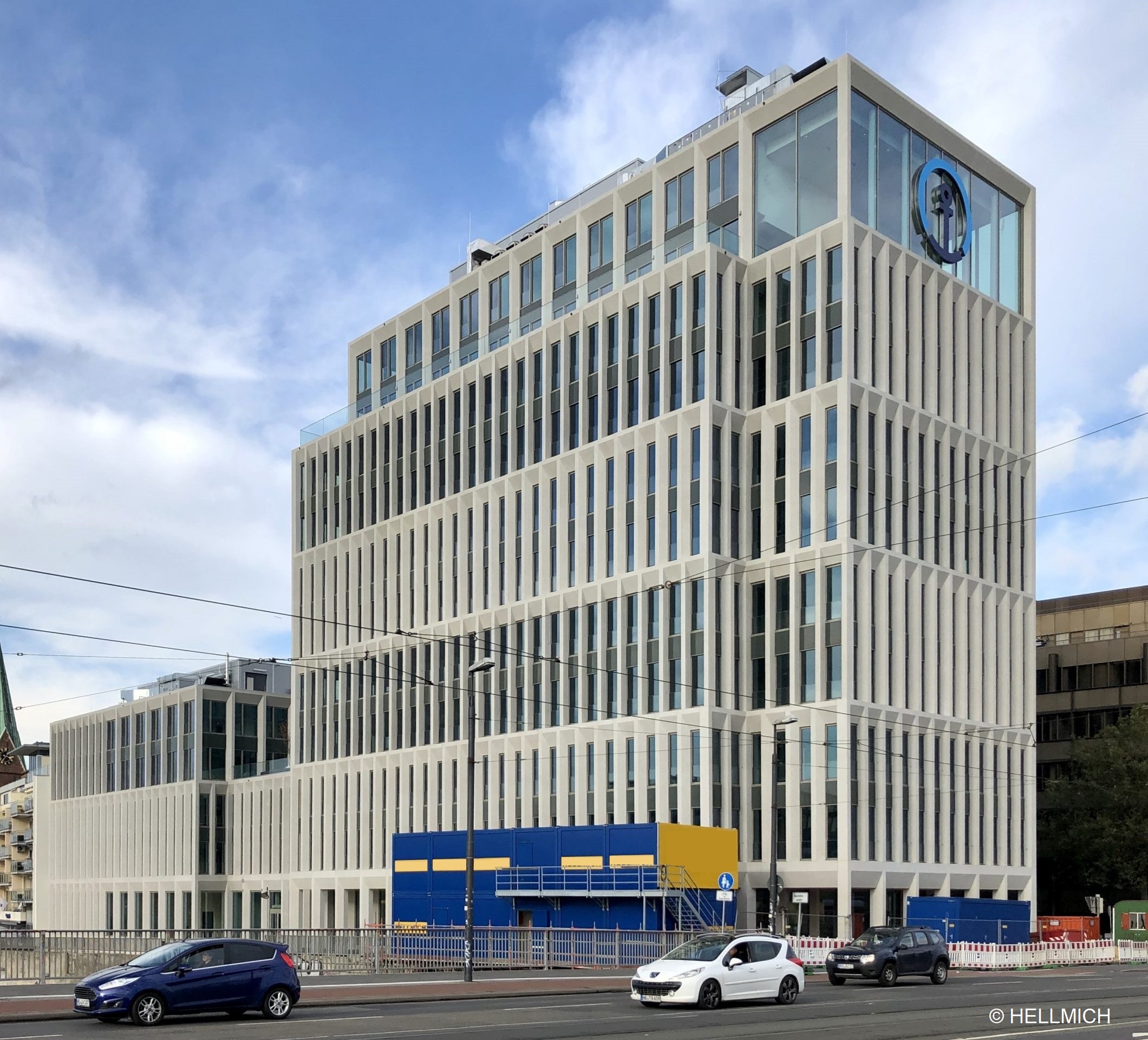 Das Gebäude besteht aus drei Teilen, Bauteil A (elfgeschossiges Hochhaus zur Wilhelm-Kaisenbrücke), Bauteil B und Bauteil C (fünf-geschossige Grenzbebauung im Westen und dreigeschossige Verbinder).