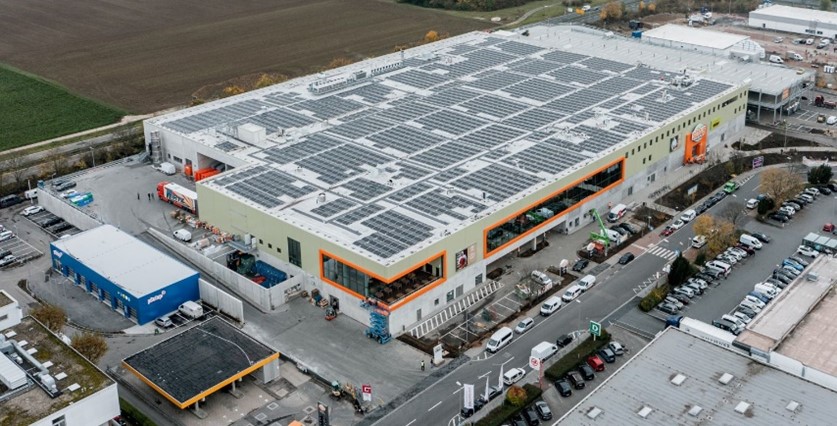 Die Wärmeerzeugung erfolgt über eine hoch­effiziente Nutzung von Abwärme aus Gewerbe­kälte. Zudem wurden ein BHKW und zwei Gas-Spitzenlastkessel installiert. Ein Großteil des Strombedarfs wird über eine Photovoltaik­anlage mit einer Modulfläche von ca. 7.000 m² gedeckt.