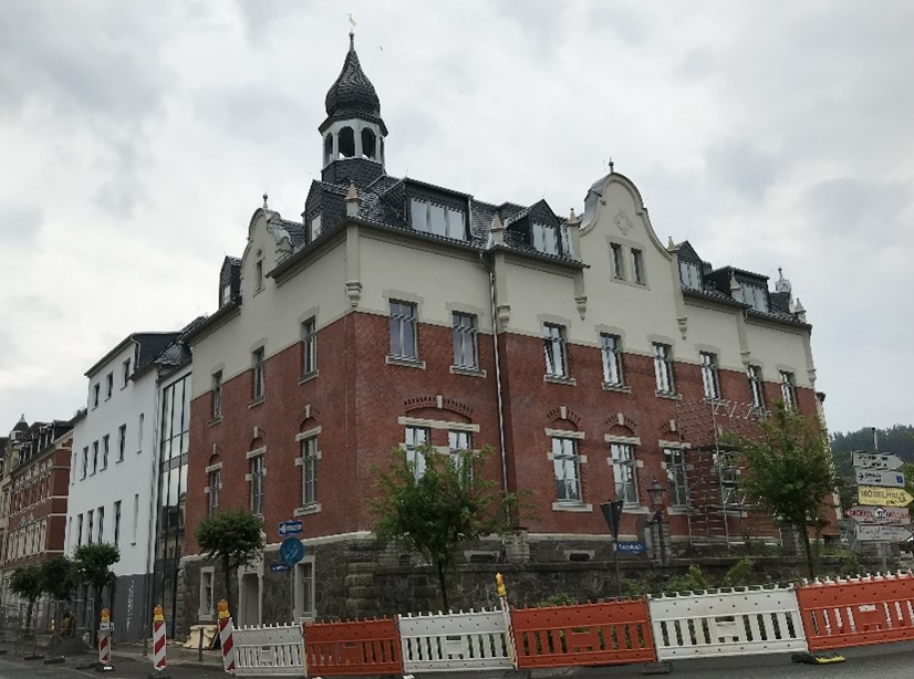 Der DRK Kreisverband Mittleres Erzgebirge e.V. Marienberg plant die Sanierung und Erweiterung eines ehemaligen Postgebäudes an der Bahnhofstraße/Ecke Albertstraße in Olbernhau zur Nutzung für ein Ärztehaus mit Sozialstation des DRK.