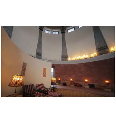 Im unteren Bereich des Wasserturms wurde ein Pool und in den darüberliegenden Ebenen wurde ein Yogaloft sowie Ruhebereiche mit tollem Blick in den Park errichtet.