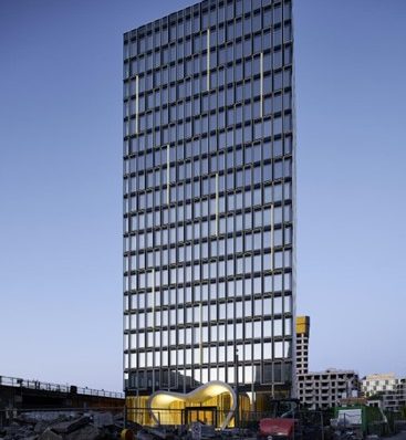 Neubau eines Büroturms am Postbahnhof 17 in Berlin nach dem Entwurf von Eike Becker Architekten Berlin.