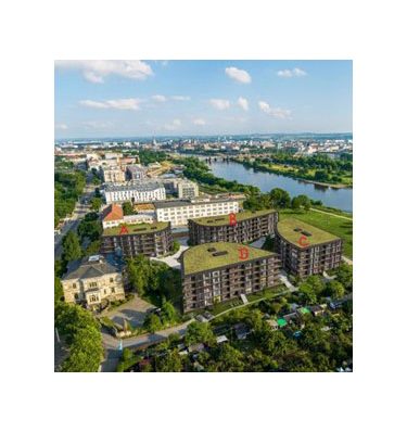 Neubau einer Wohnanlage unmittelbar an der Elbe in Dresden-Pieschen nach Plänen von Knerer und Lang Architekten Dresden, bestehend aus vier Gebäu…